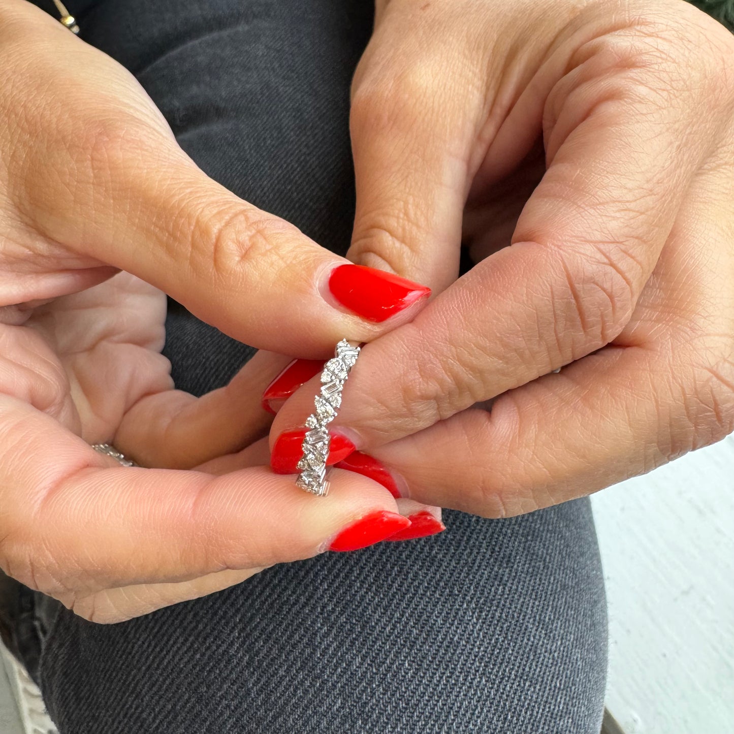 This stunning Fete Diamond Band features round and baguette diamonds set in a beautifully crafted band. With sparkling diamonds and a timeless design, this band adds a touch of elegance to any look. Expertly crafted with precision, it is sure to be a treasured piece for years to come.