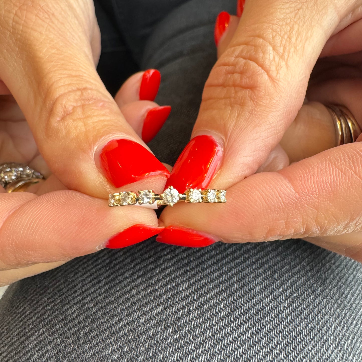 We make every effort to keep this style in stock in our most popular sizes (6 or 7) but sometimes it does sell out! If that happens, please allow up to 4 weeks for us to make this just for you. If you need something by a specific date please do not hesitate to reach out & confirm a ship date with us before ordering: shop@katiediamondjewelry.com.