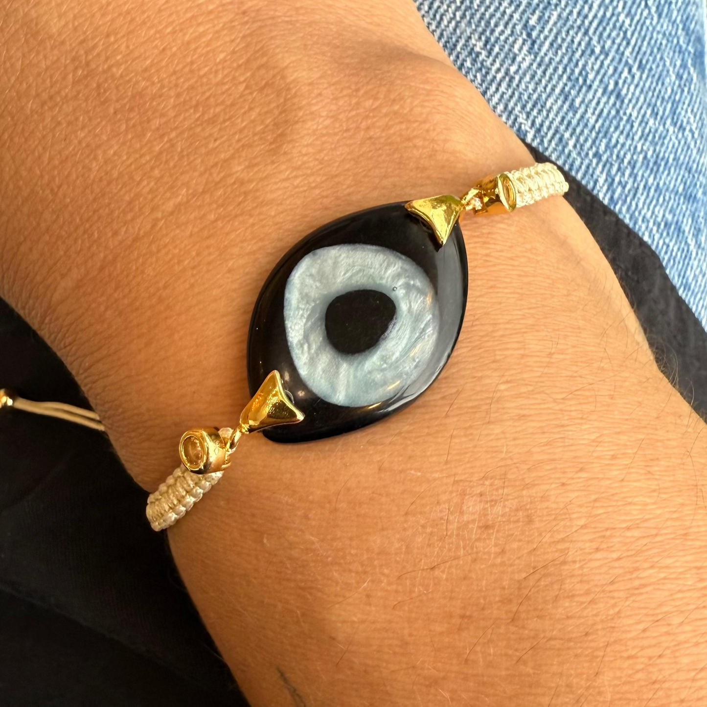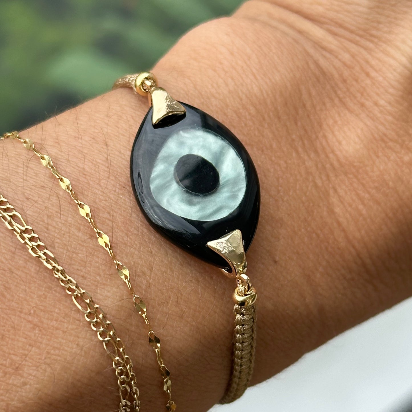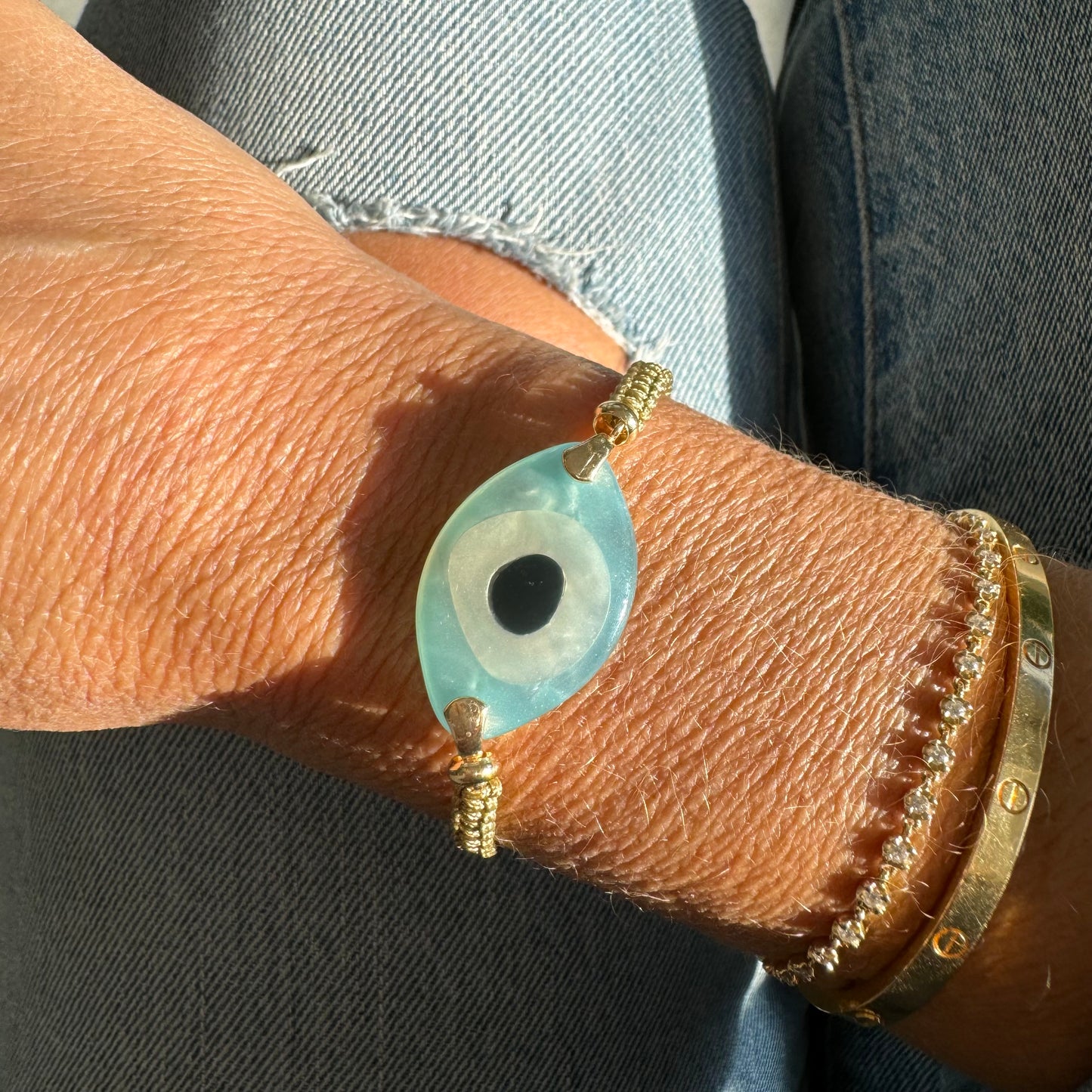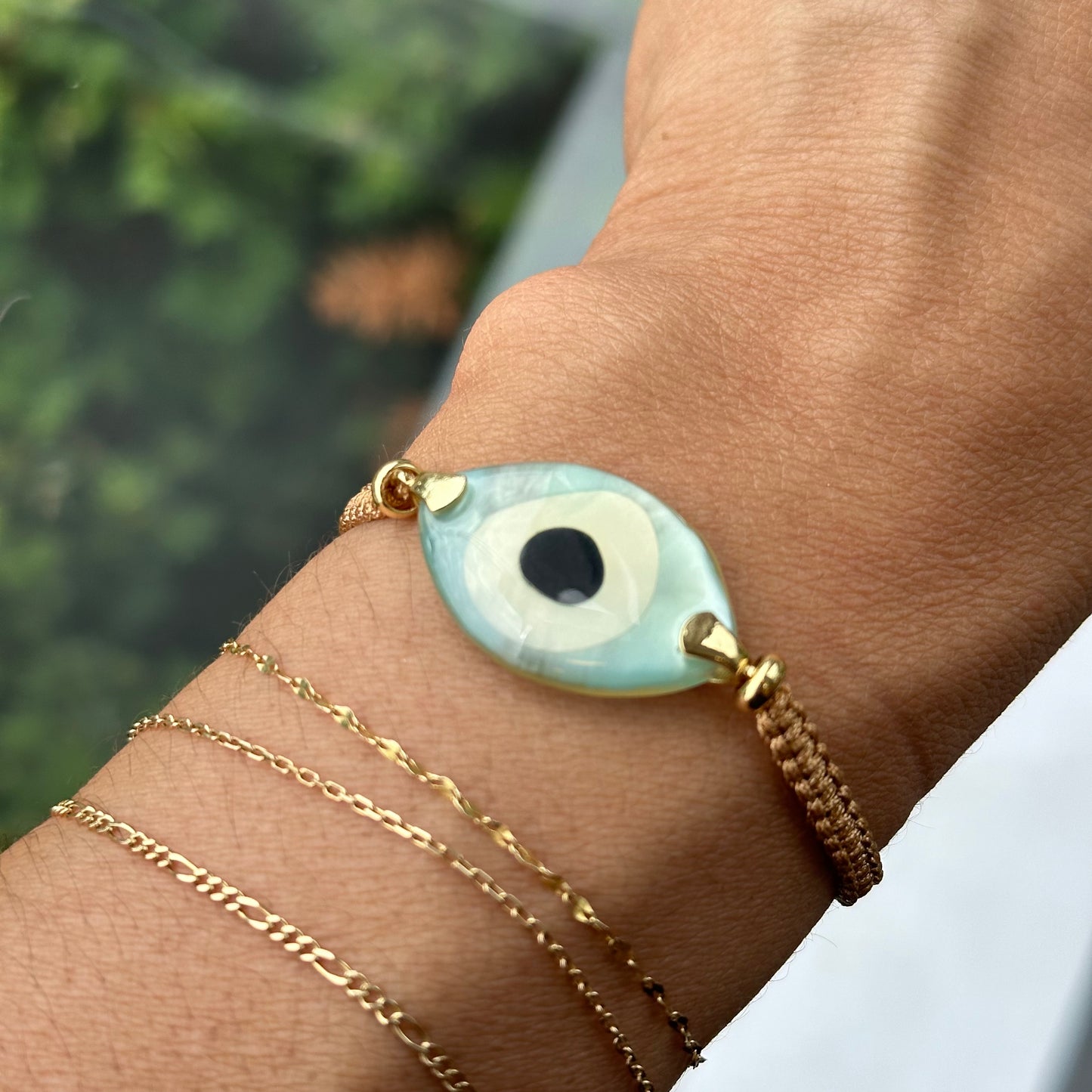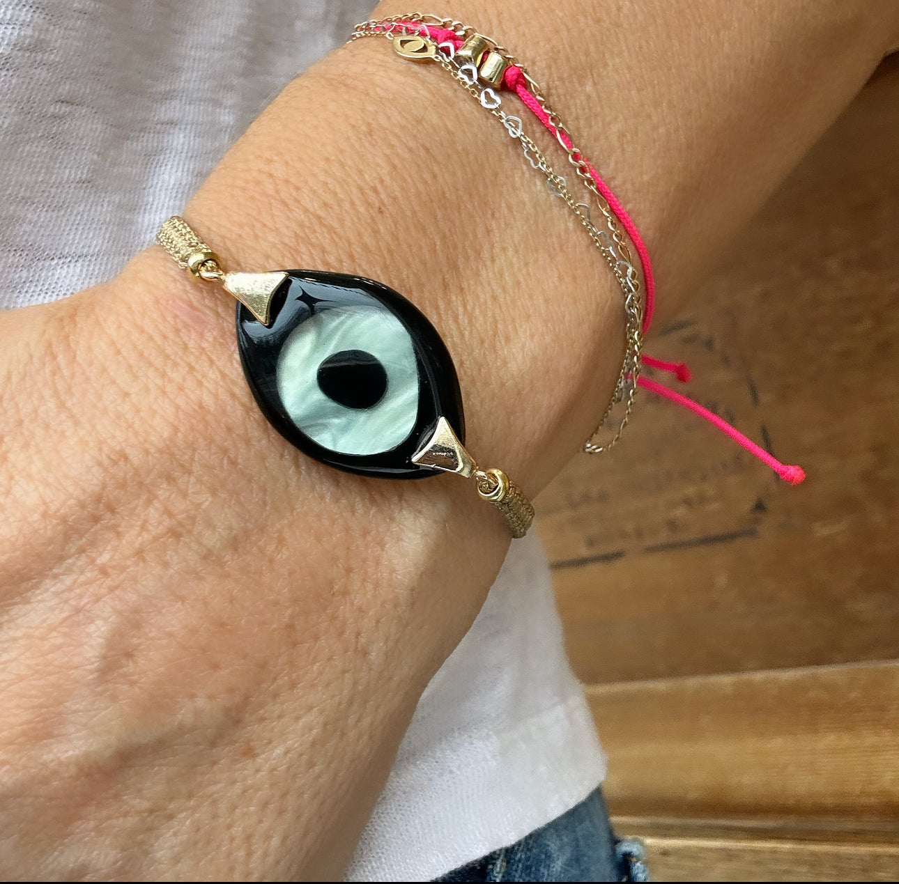 Introducing the Gypsy Eye Bracelet, the perfect accessory for adding positive vibes to your style. Featuring an eye charm, this adjustable bracelet is sure to catch the attention of others and bring good energy to your day. Trust in this expertly crafted piece for effortless style and good vibes.