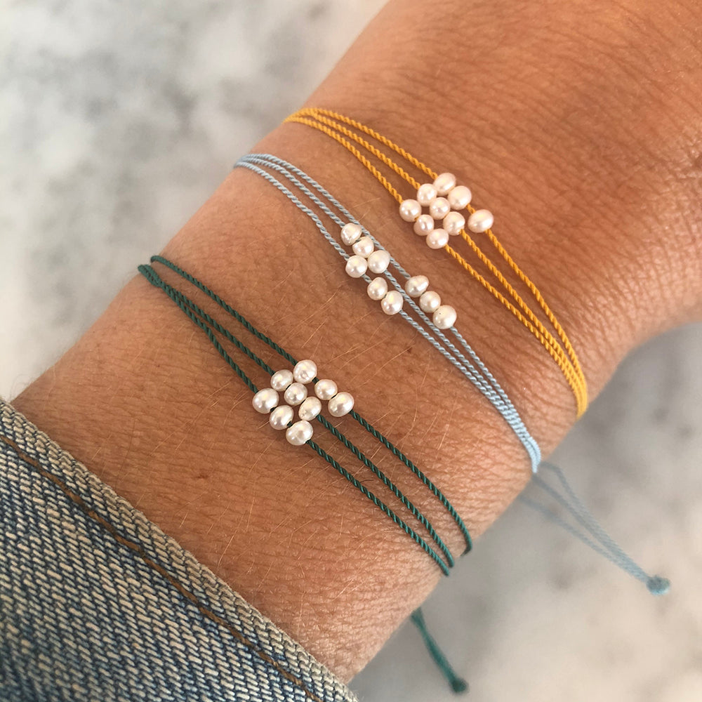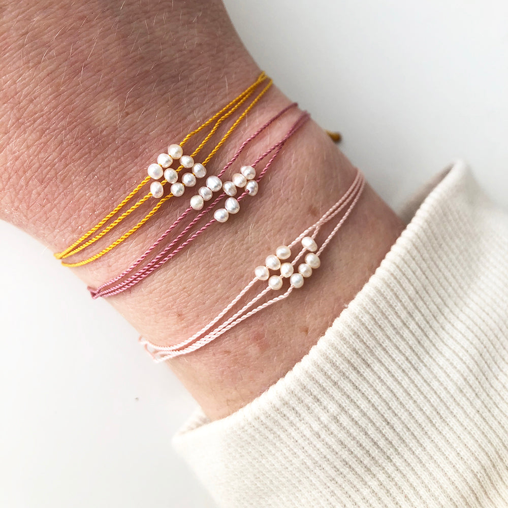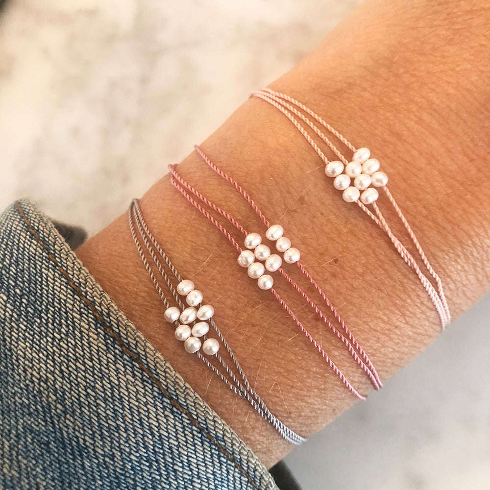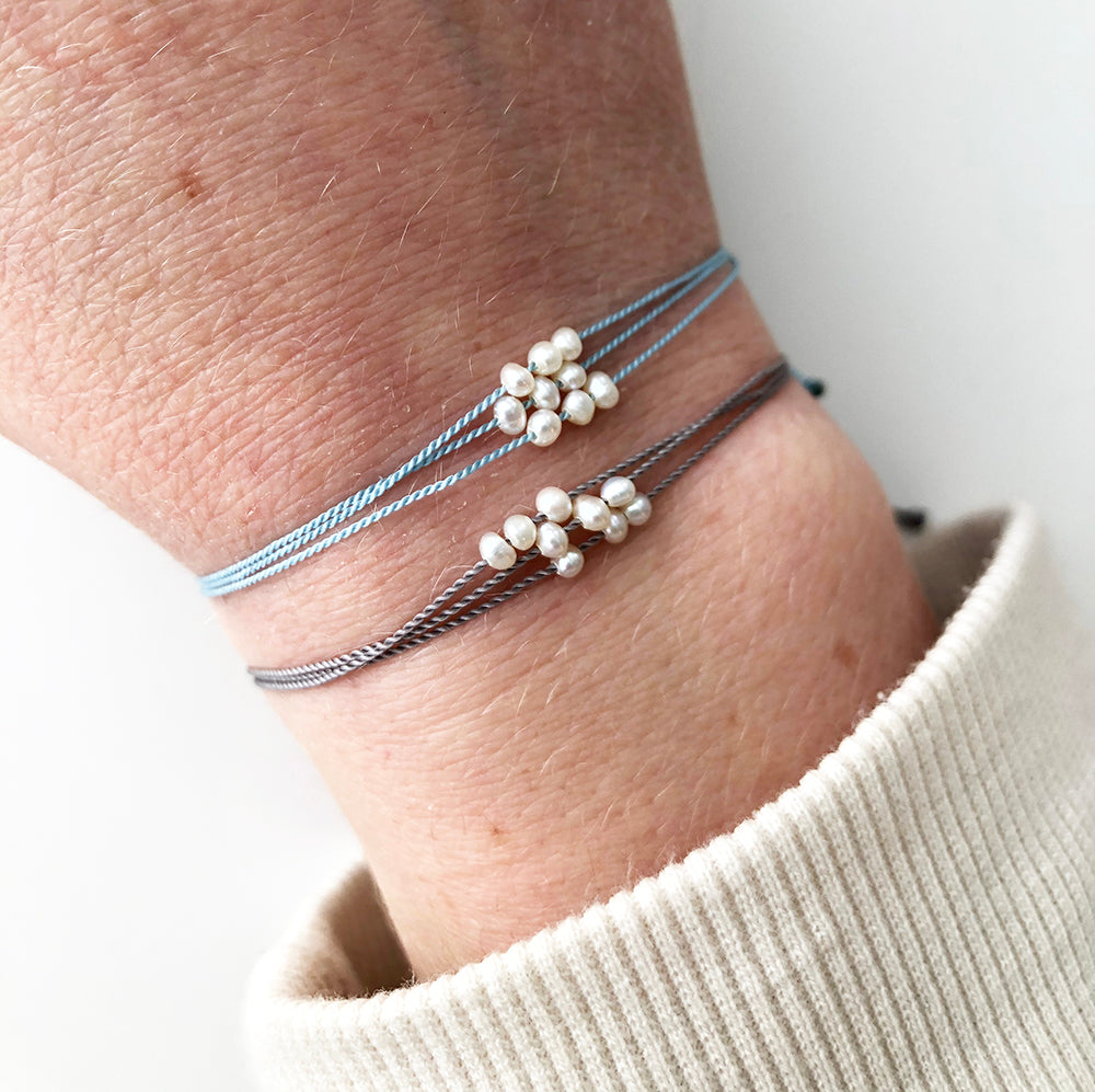 The daintiest little cord pull-bracelet with fresh water river pearls. The perfect gift for you and your best friend. We also love it as a special mother-daughter gift.