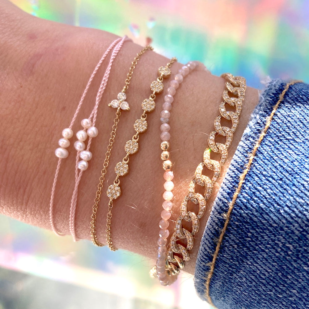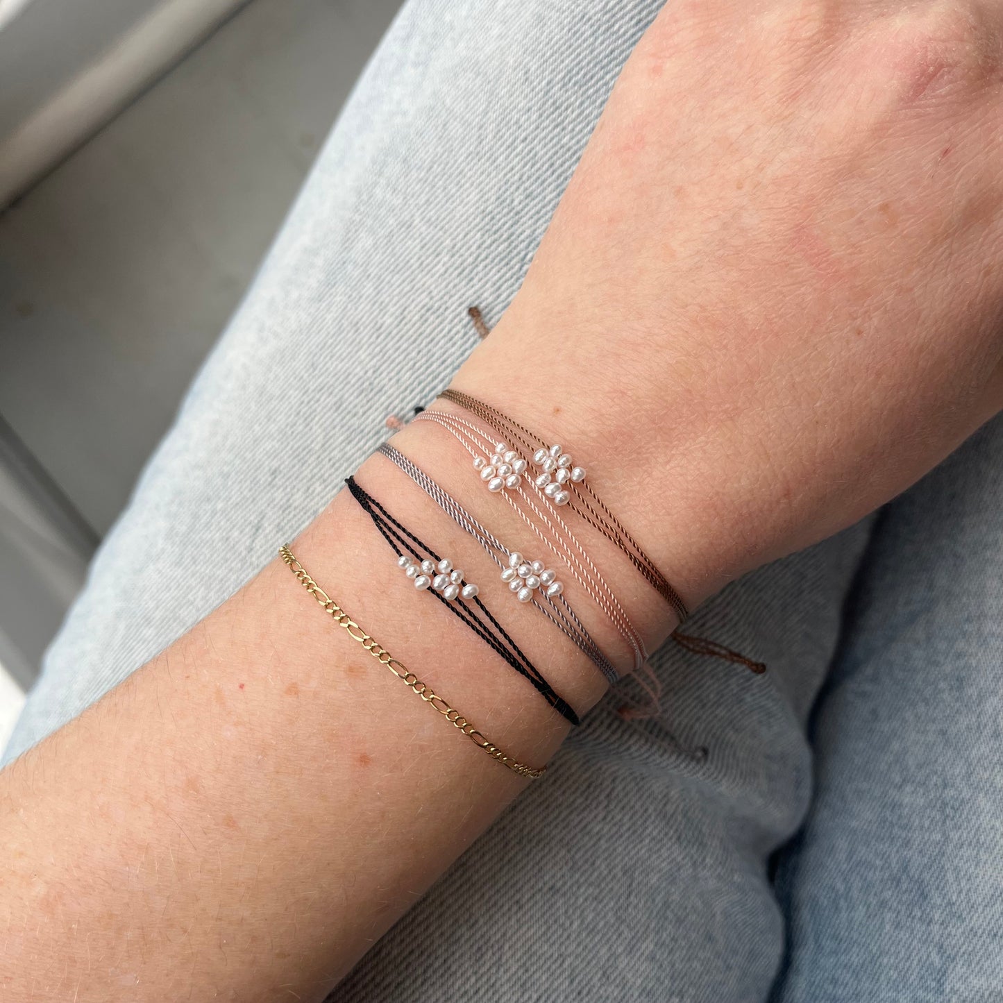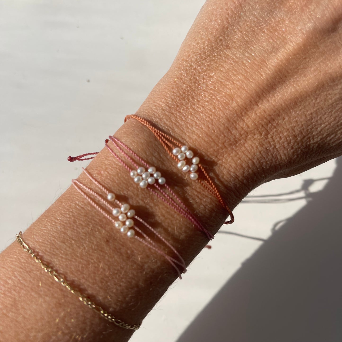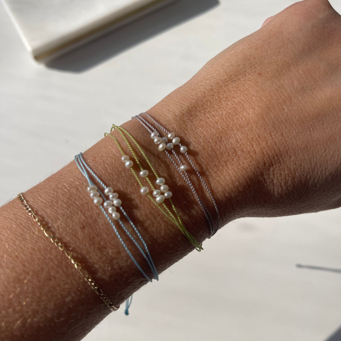 The daintiest little cord pull-bracelet with fresh water river pearls. The perfect gift for you and your best friend. We also love it as a special mother-daughter gift.