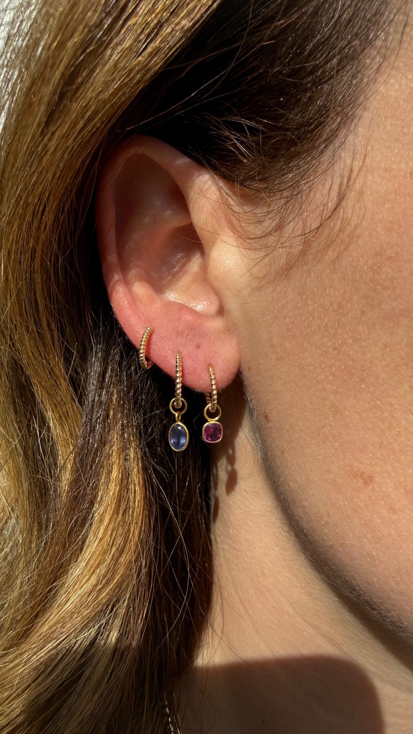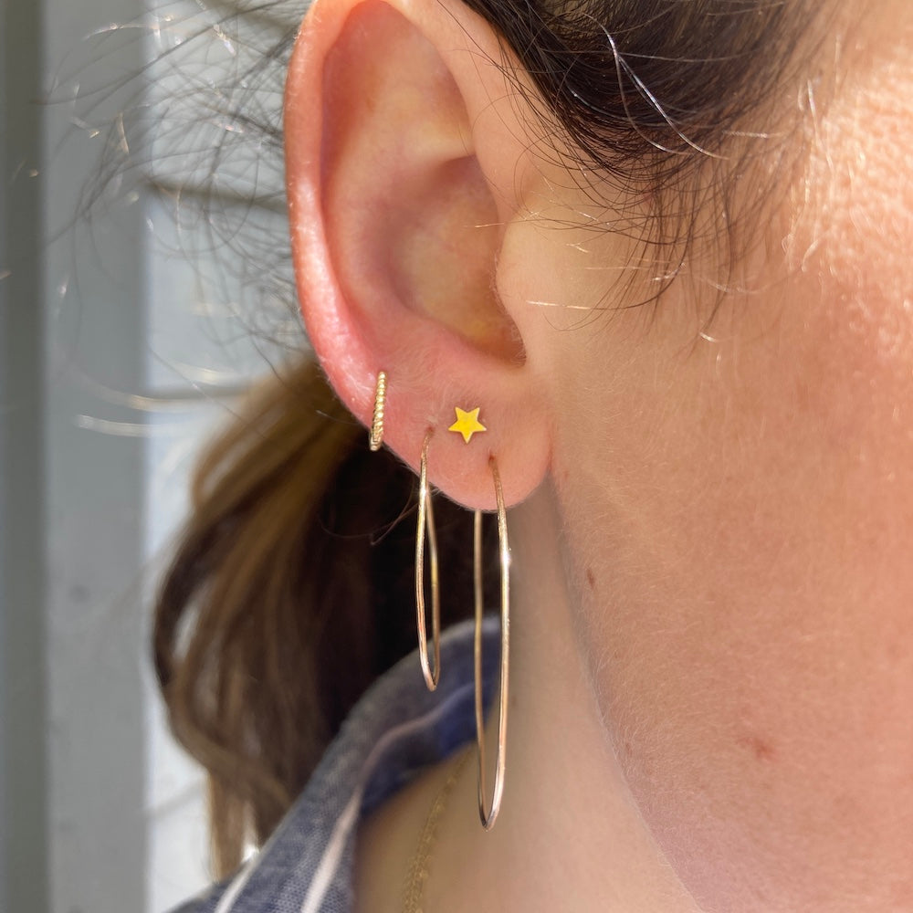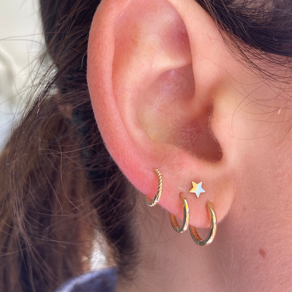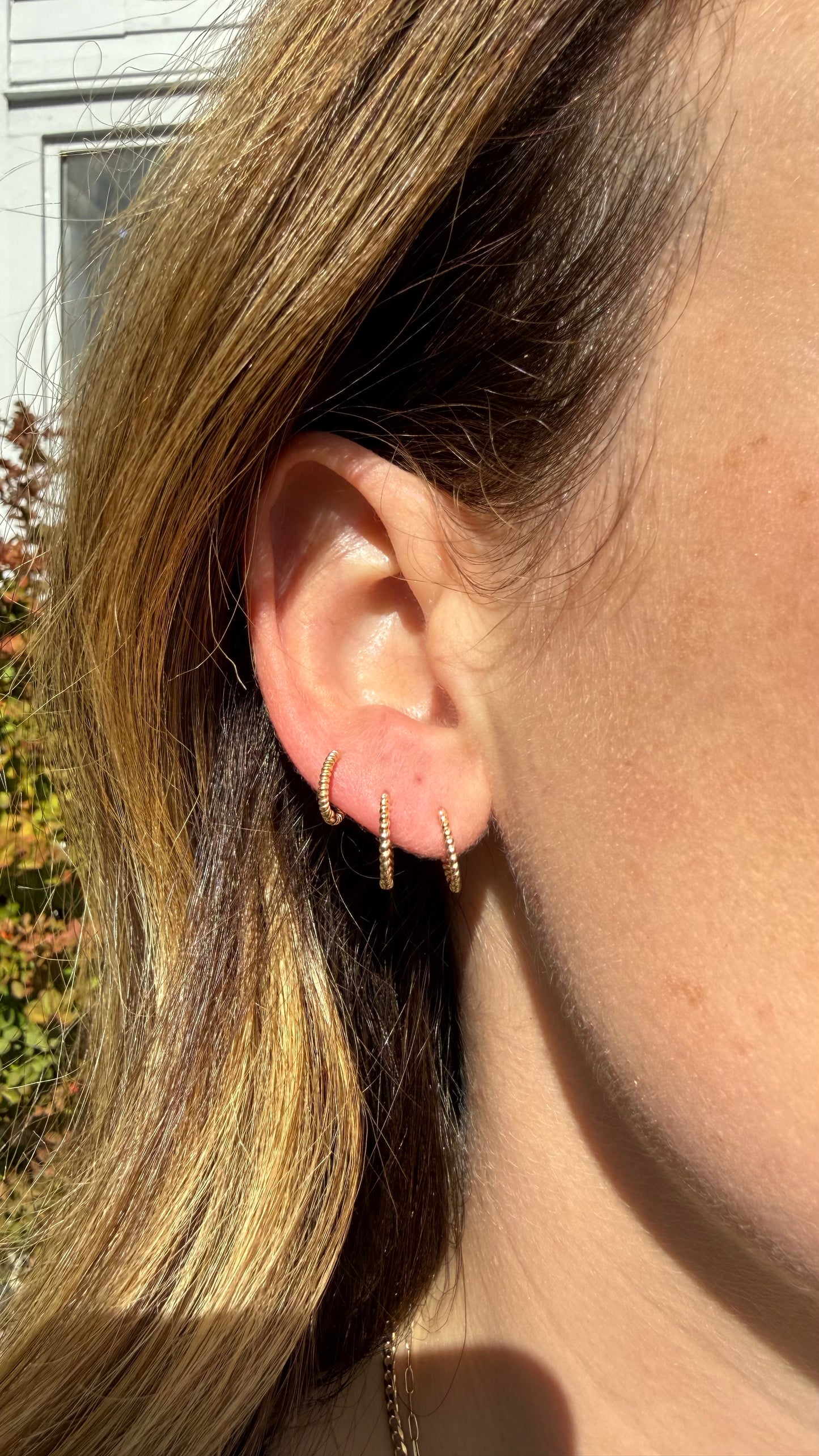 Made of 14k gold and feature a twisted detail. We love these on their own but they're extra special when styled among other piercings to create your very own ear style story.