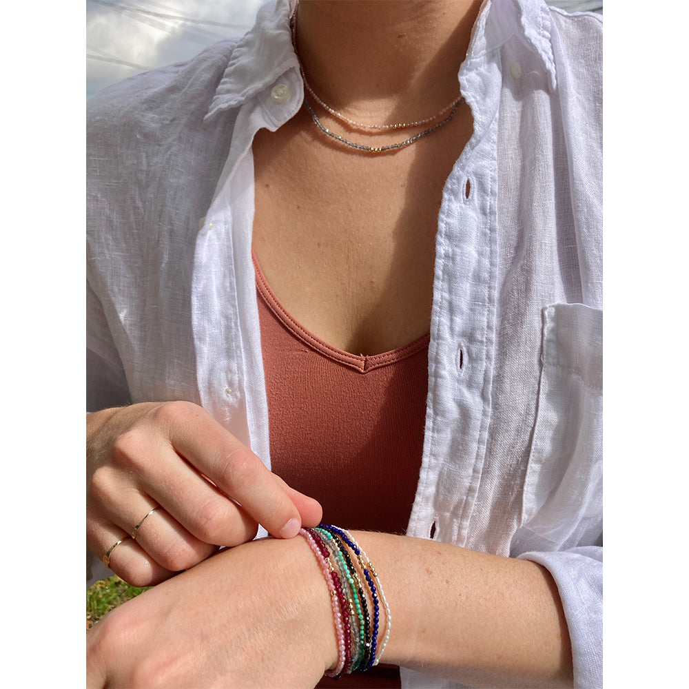 The number three is feminine and has strong ties to faith. Our three wishes beaded necklace is available in a variety of different natural gemstones, each with meaningful properties. We think the three wishes beaded necklace makes an extra special gift. Give one to a friend or treat yourself.