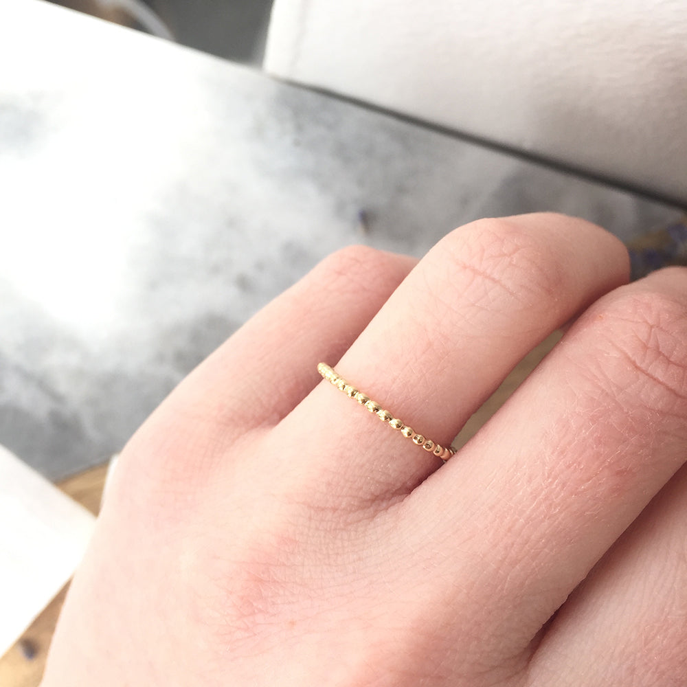 Featuring a delicate bead texture, this Gold Stacker Ring is the perfect accessory to add some subtle shine and pizzazz to your stack! Its simple yet stylish design allows you to mix and match it with other rings to create a unique and eye-catching look. So get stacking, 'cause it's Just. That. Easy!
