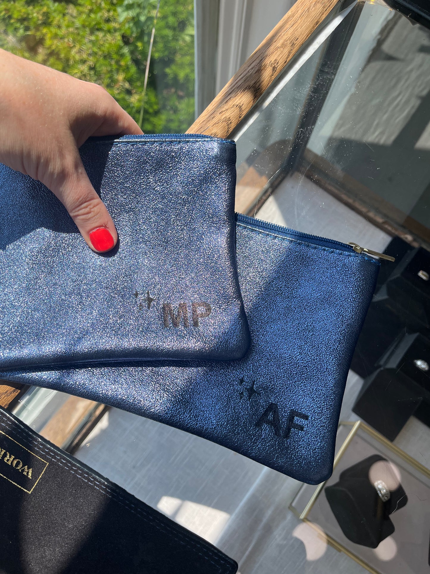 Let us know how you want it personalized in the 'comments' section at checkout and we'll work with you to make sure it's just right! *Engraving color varies depending on color of the pouch*