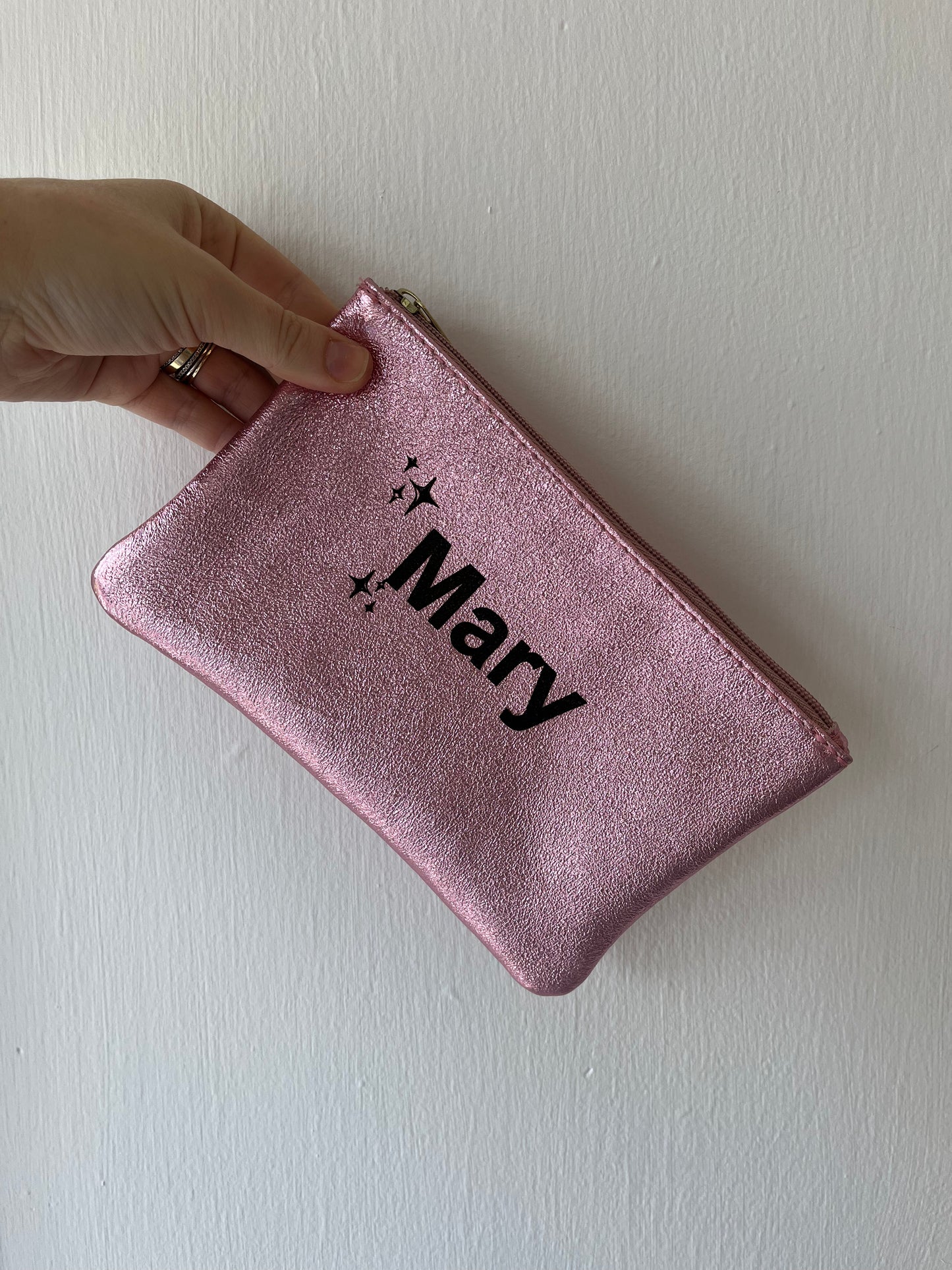 Elevate your essentials with the SUPER NOVA ZIP POUCH, a luxurious 8x5" flat accessory crafted from premium Italian leather by Les Cleias. Available in ten eye-catching metallic finishes, this versatile pouch secures your belongings with a reliable zipper closure. Make it uniquely yours with optional personalization—the perfect blend of practicality and sophisticated style for organizing everything from cosmetics to travel documents.
