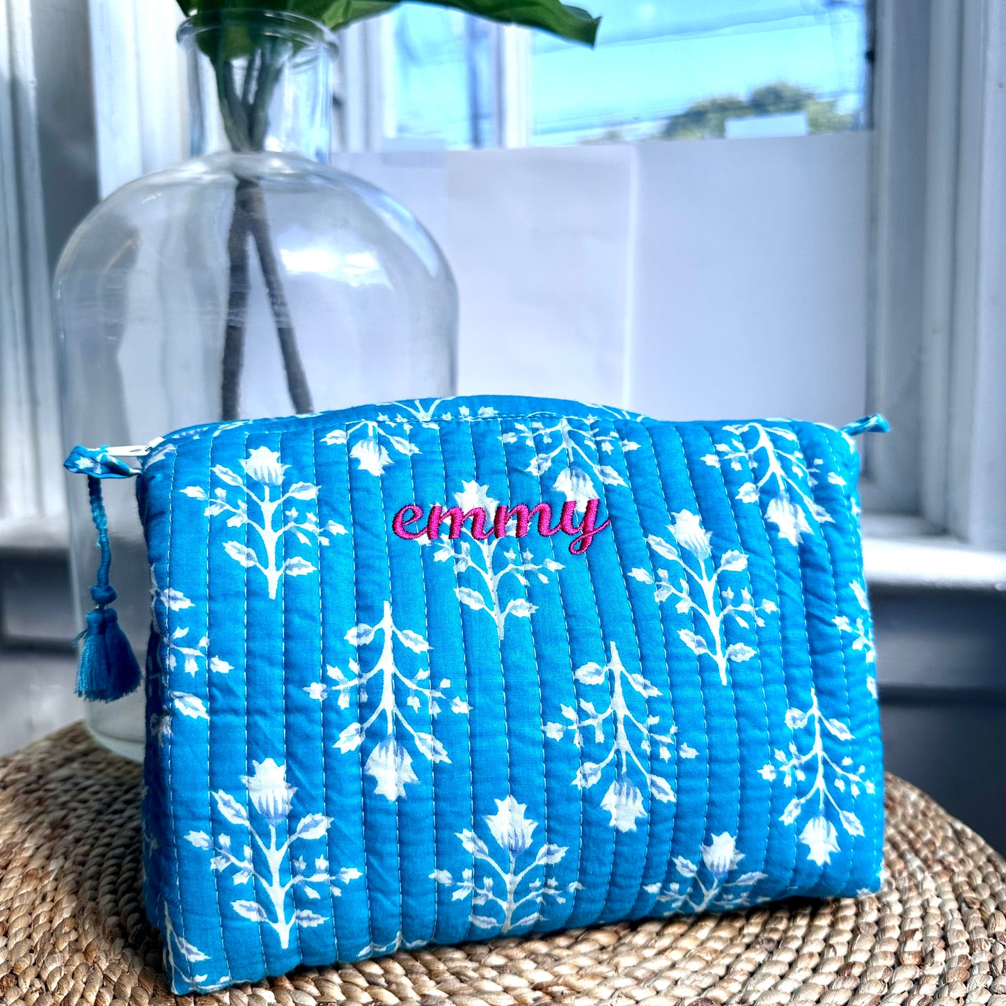 Expertly crafted by Indian artisans in Jaipur, our Blue City Zip Pouch is made from 100% cotton and features a beautiful quilted block print design. These pouches are fully lined and perfect for travel or storing your essentials.