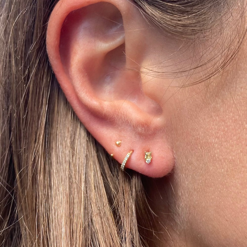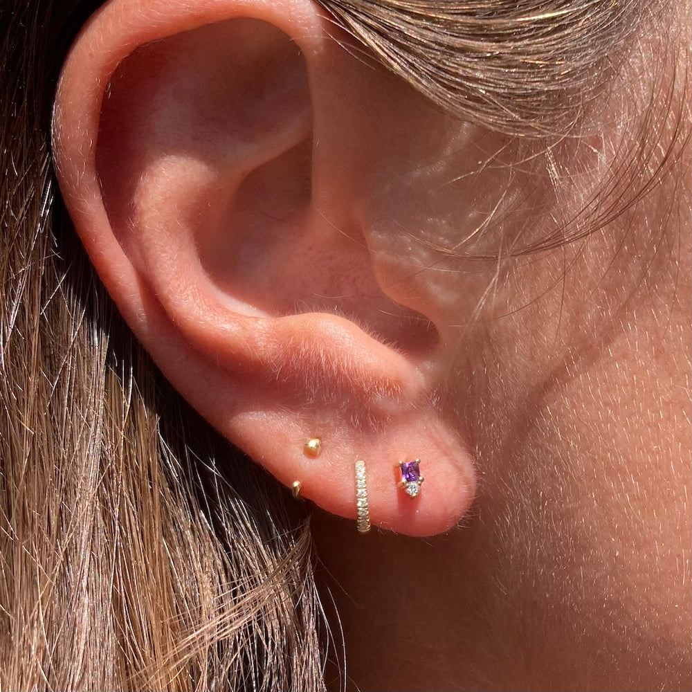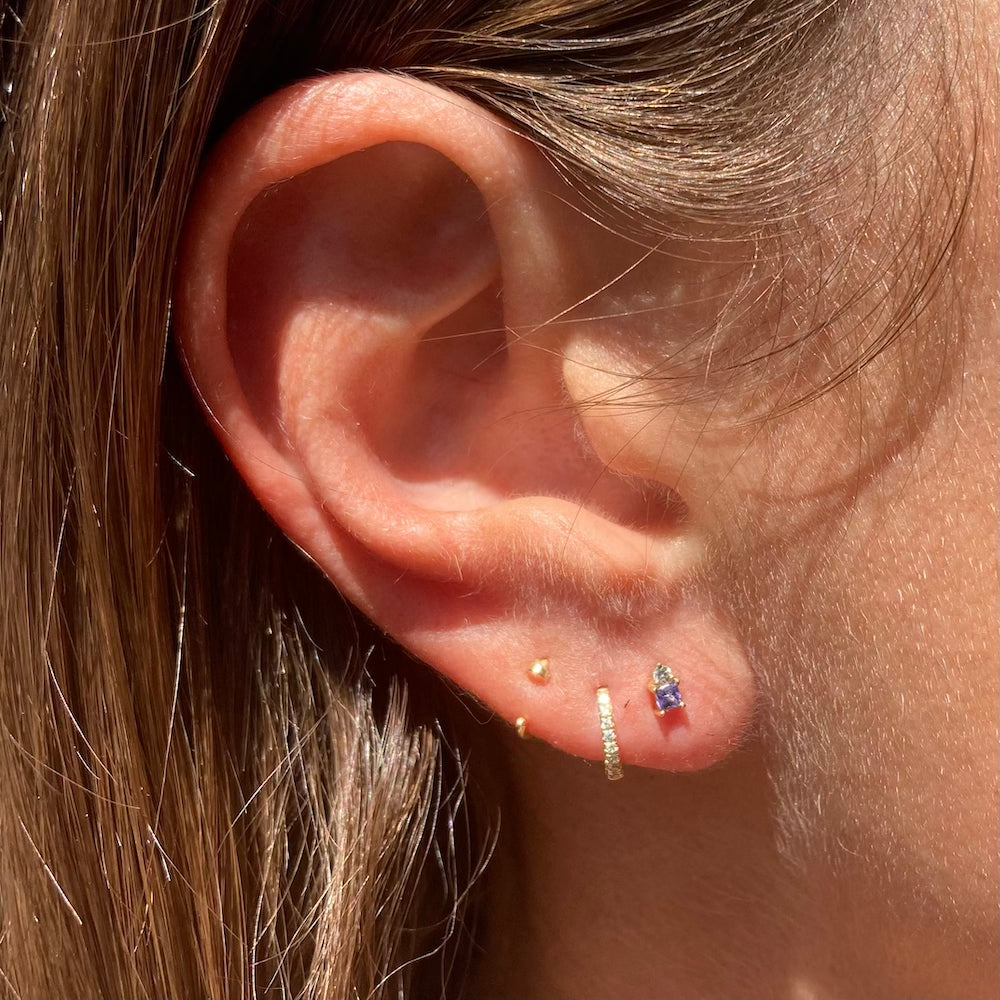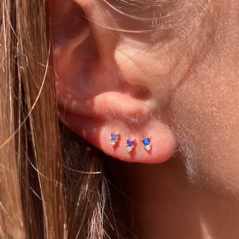 Show off your birthstone in style. Each stud earring features your selected birthstone in a beautiful square silhouette, accented by a single round, sparkling diamond. It features 0.08 carats of selected stone and set in 14k yellow gold. Sold as a single