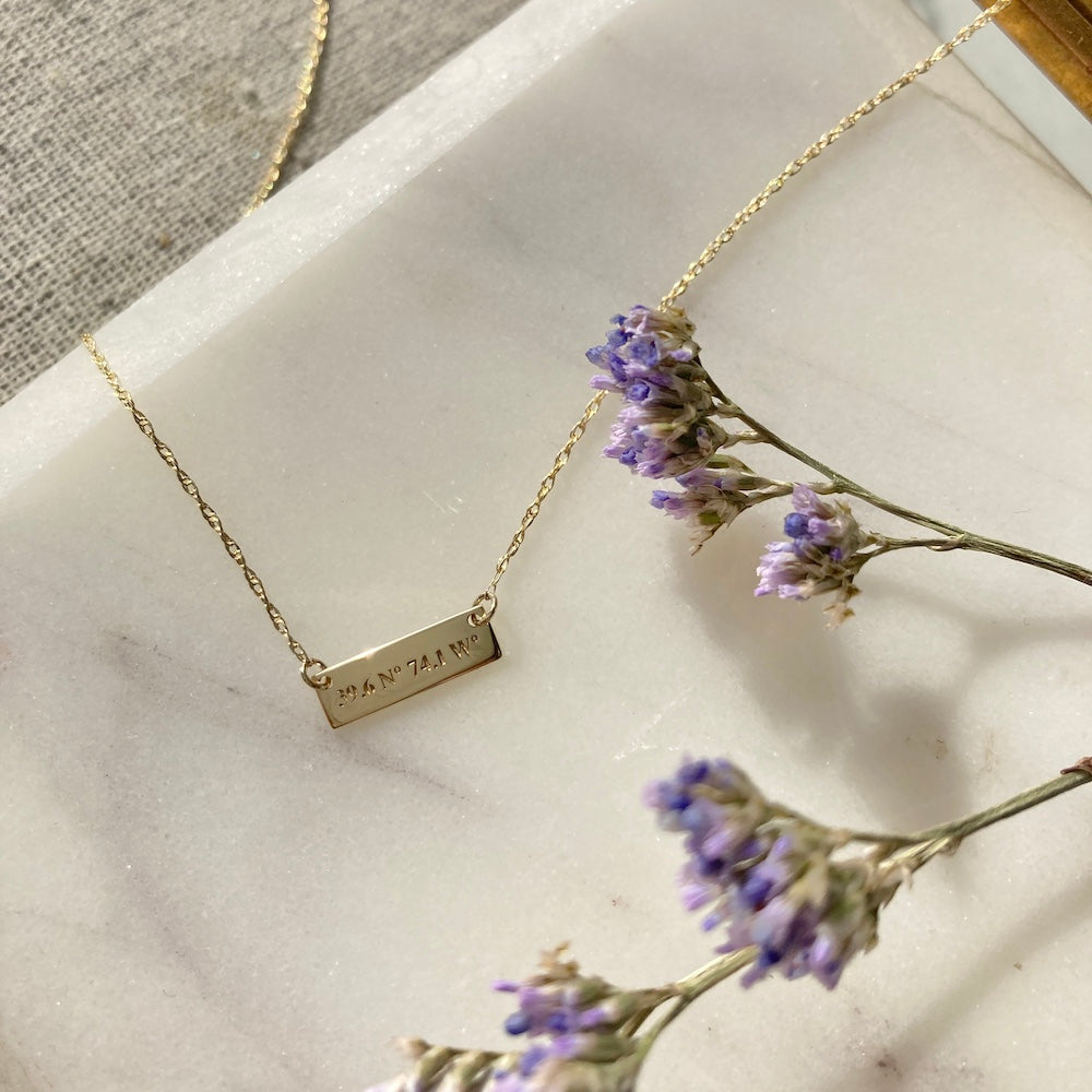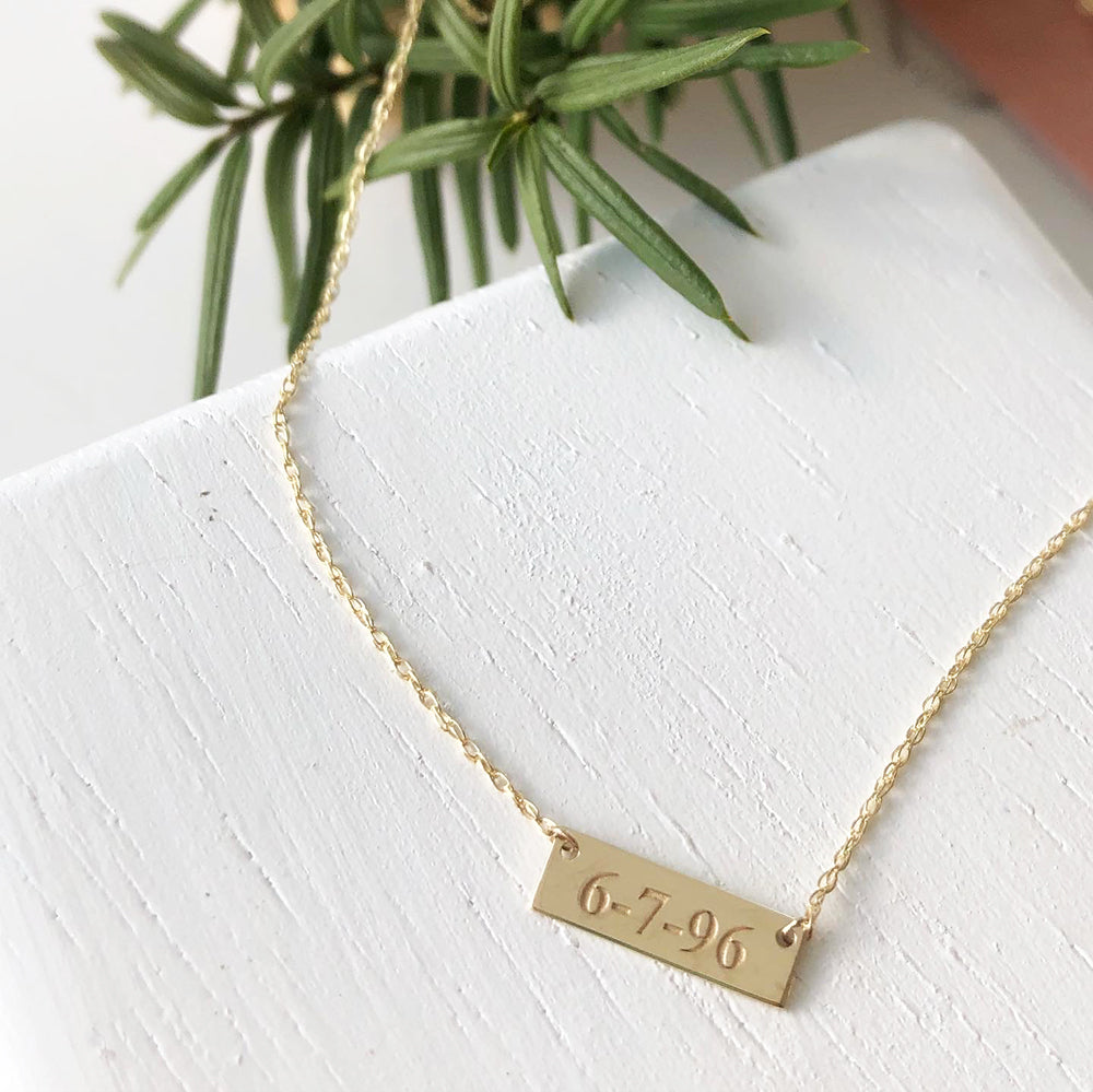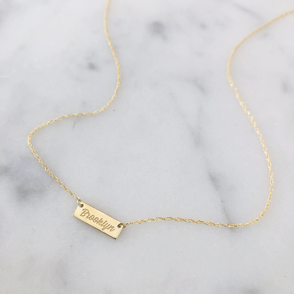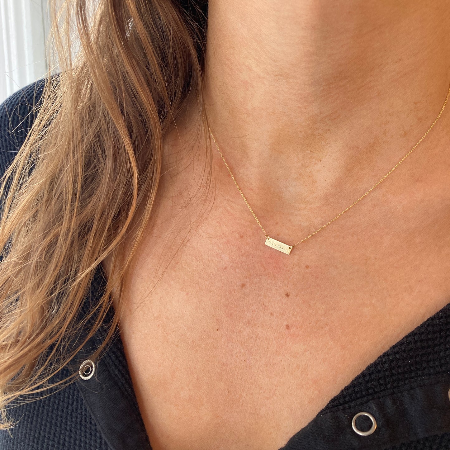 Keep a special message, initial, date, or word close to your heart with our teeniest, tiniest bar necklace.