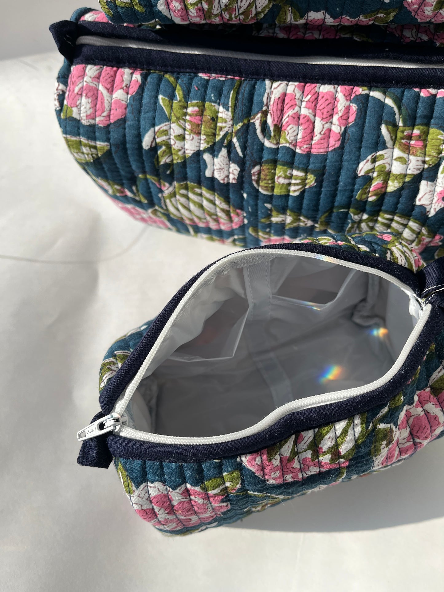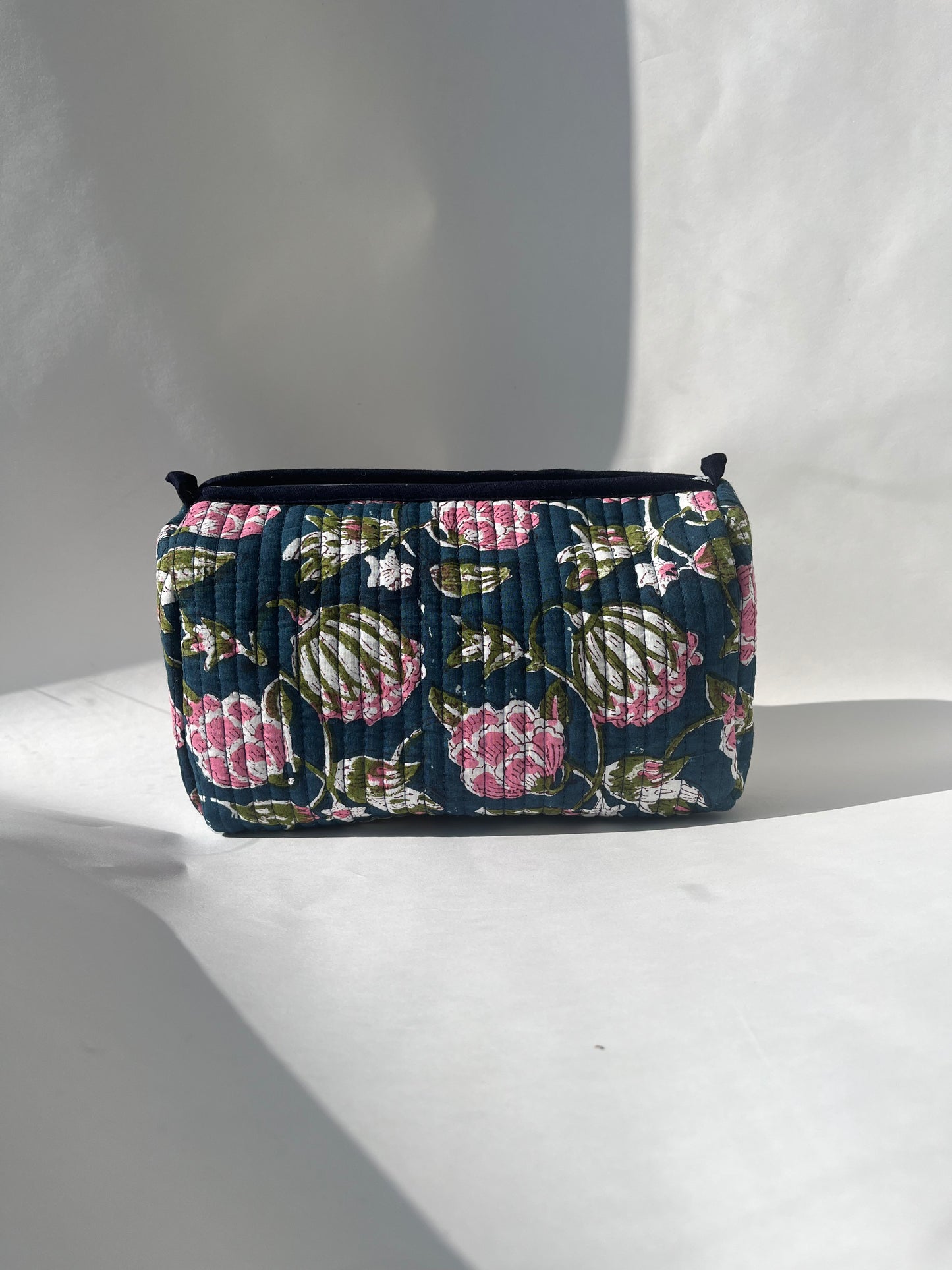 Navy Pouch with Gold Beaded Bee Embroidery and Silver Tassel