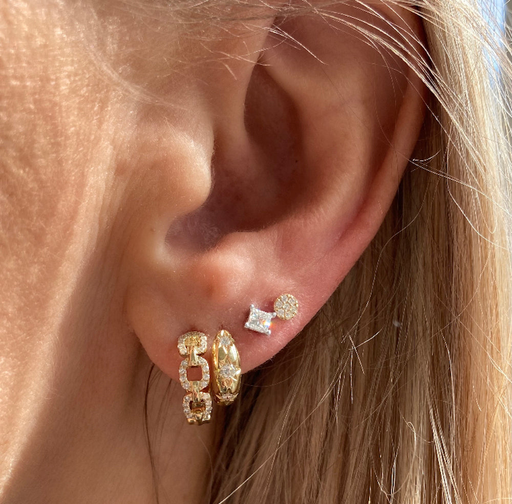 These elegant and classic huggie hoops are everything we've ever dreamed of. Chain link and diamond detail bring sophistication to the huggie hoop trend.