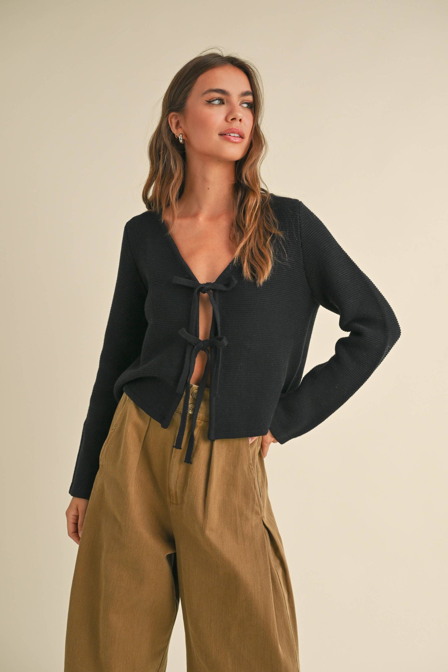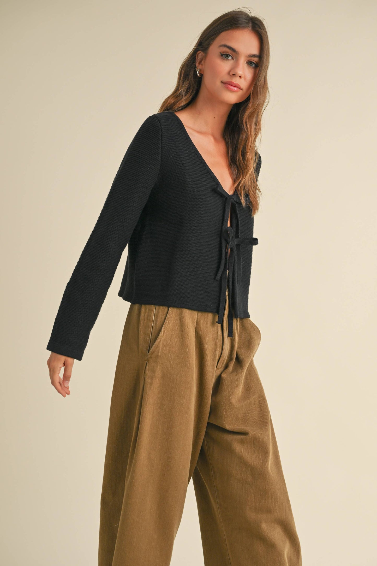 J4721 LONG SLEEVE KNITTED TIE FRONT CARDIGAN