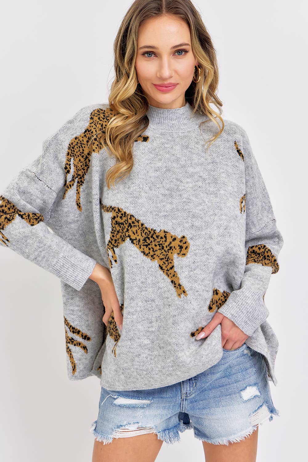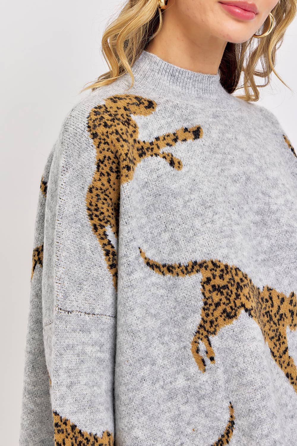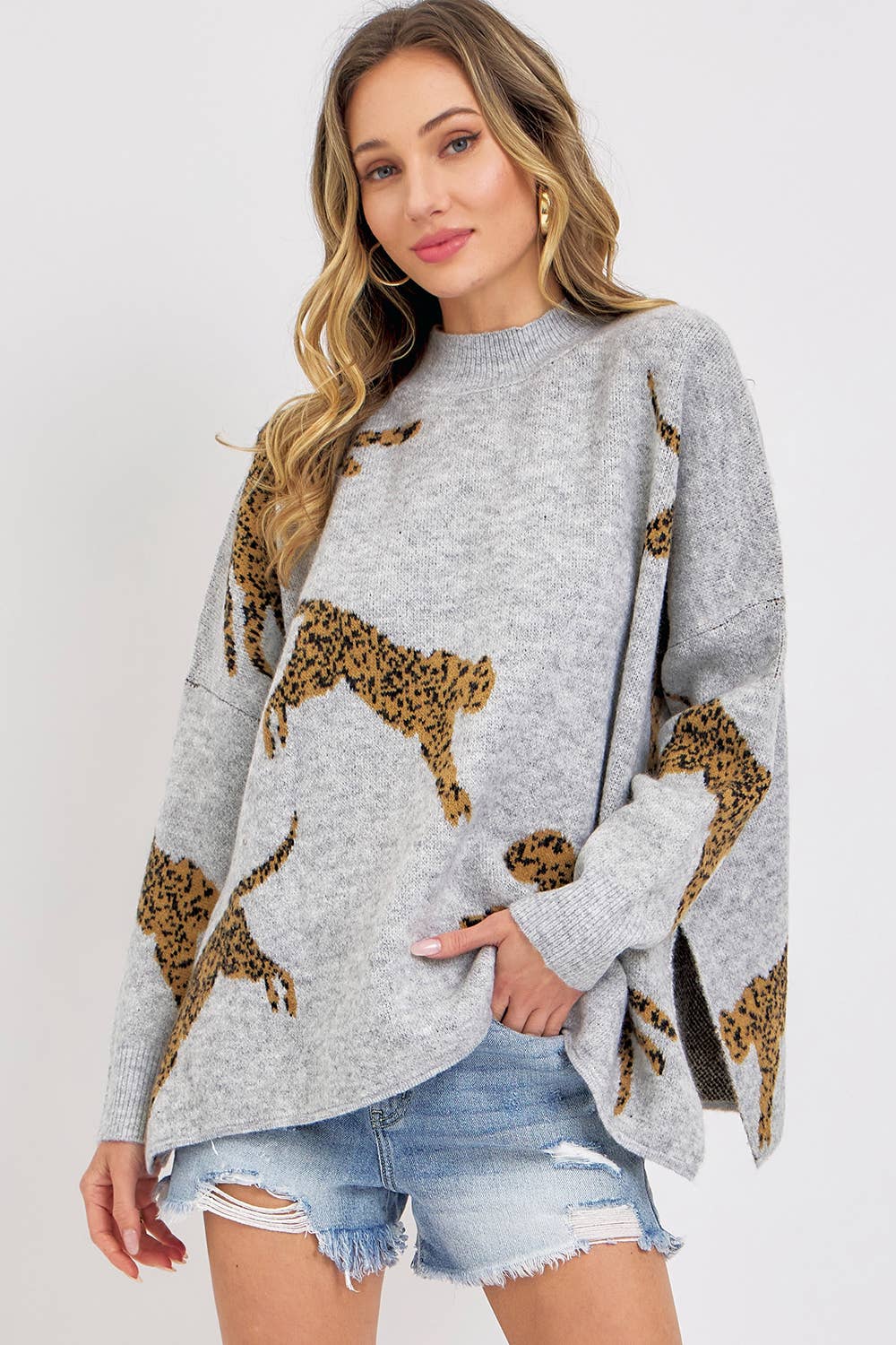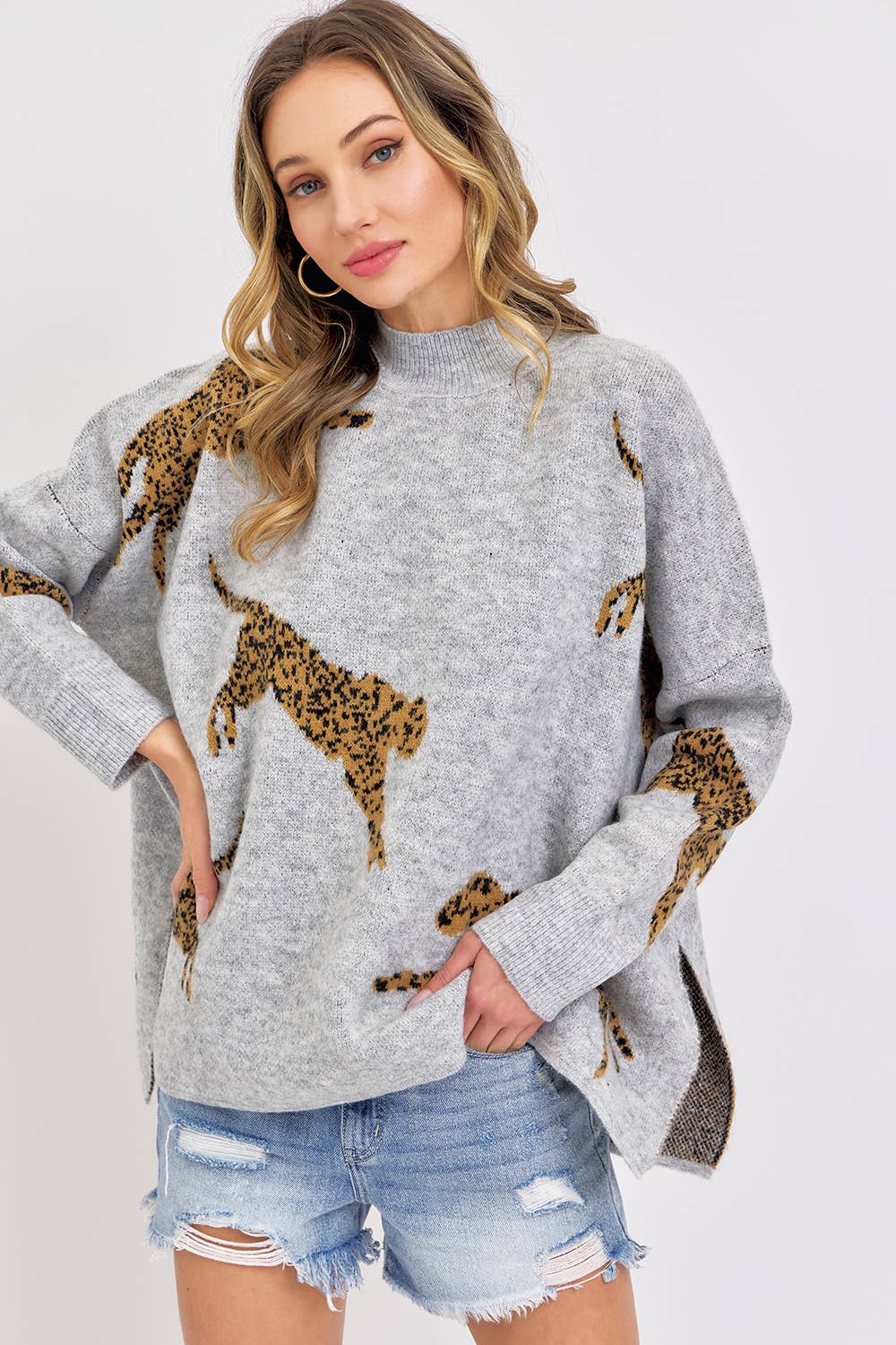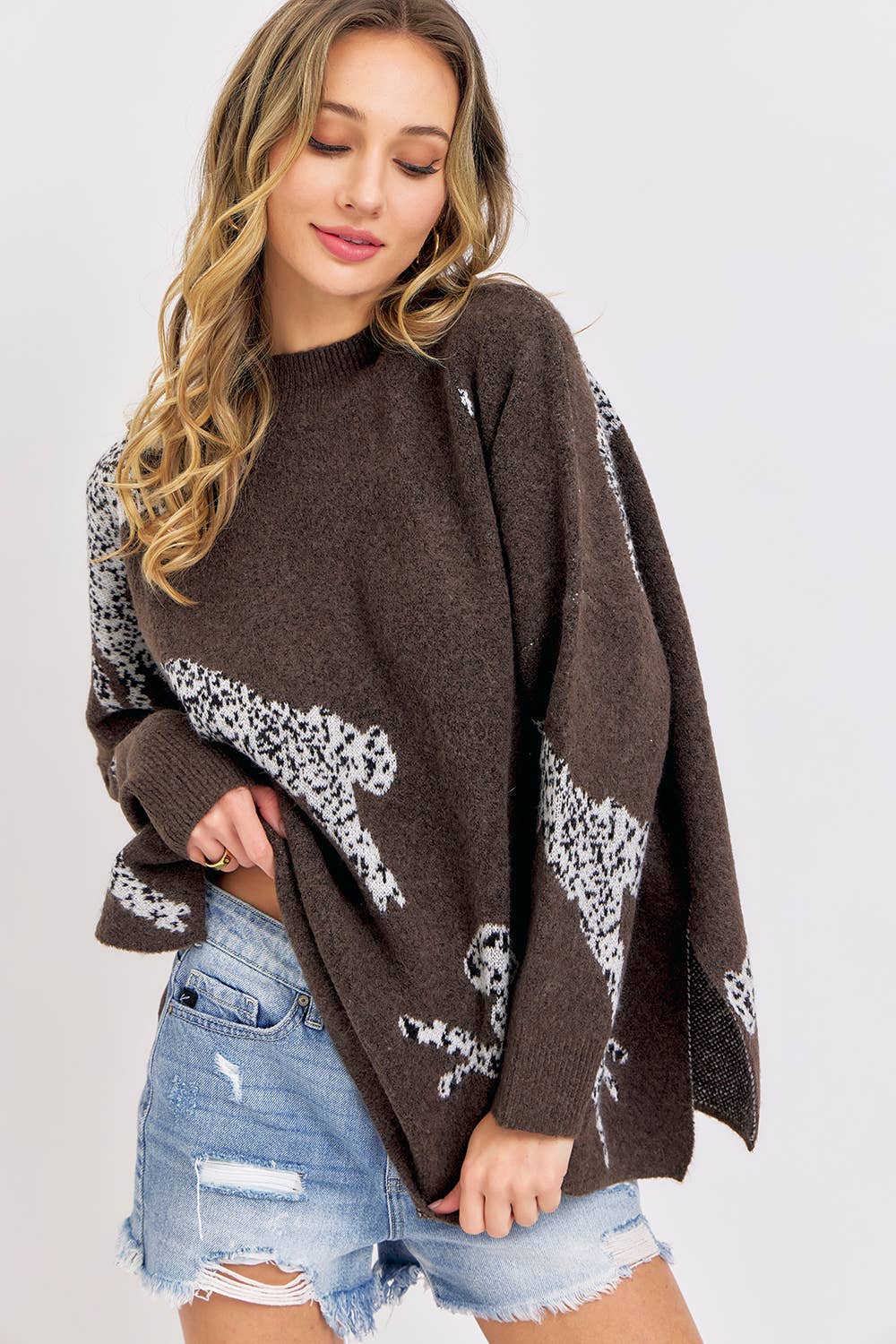 LEOPARD PATTERNED OVERSIZE KNIT SWEATER