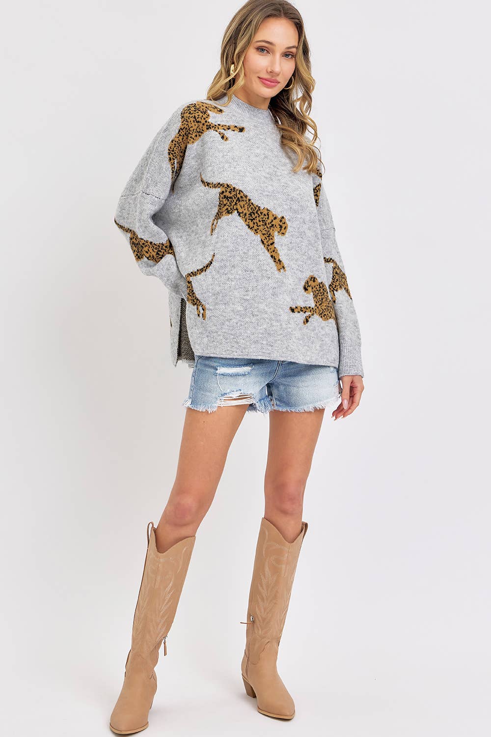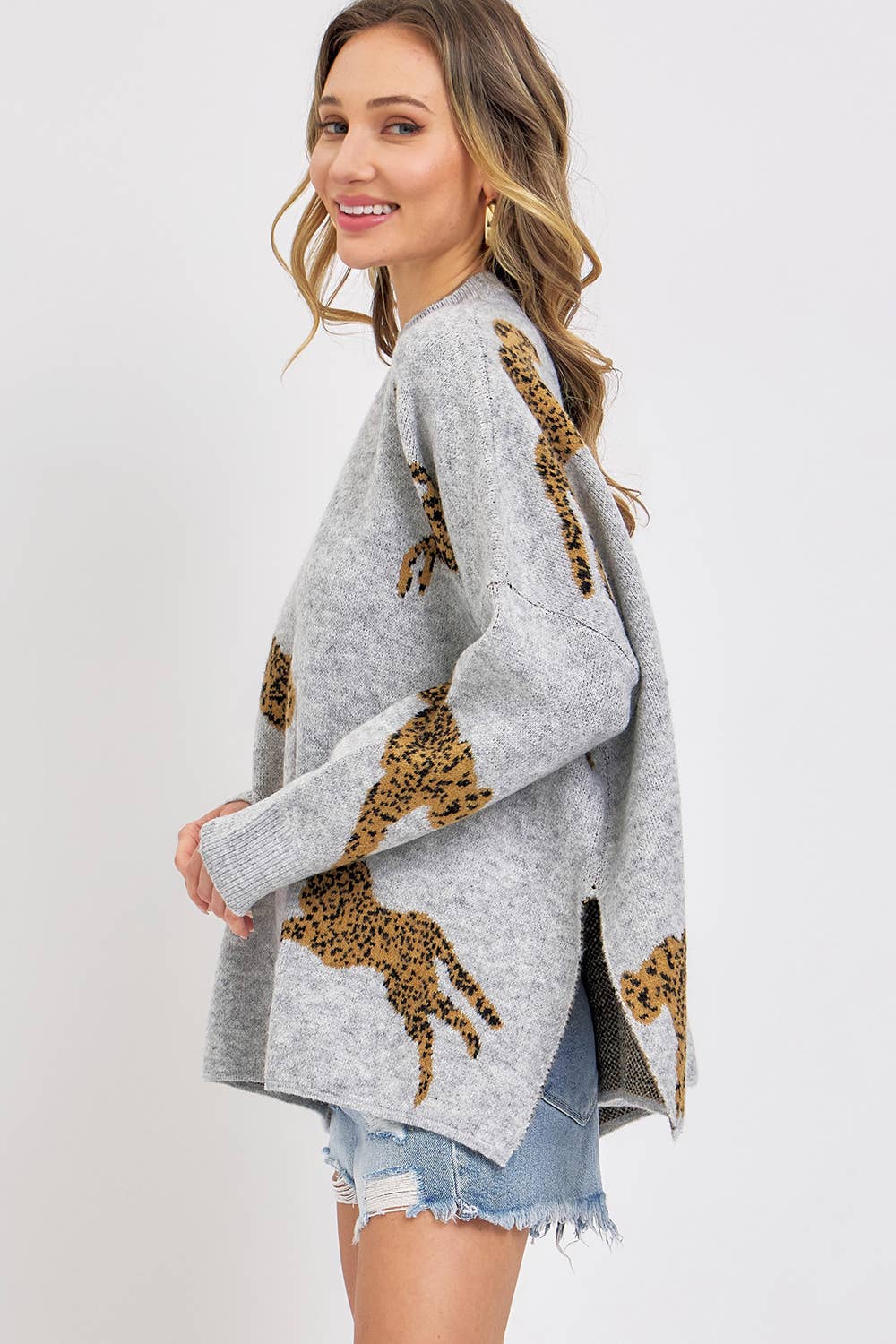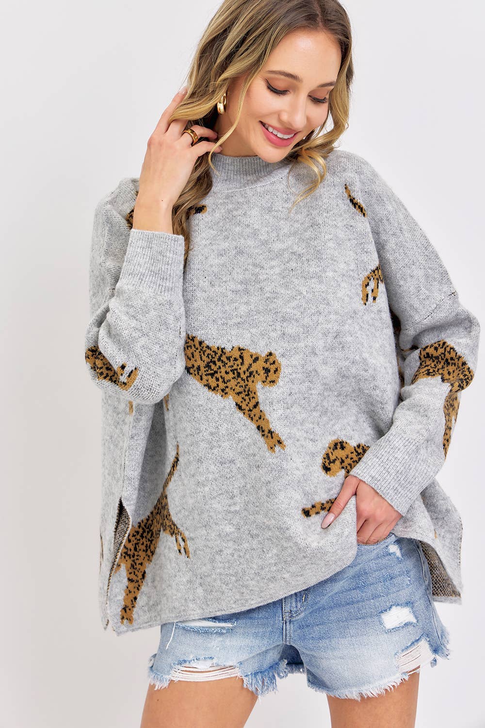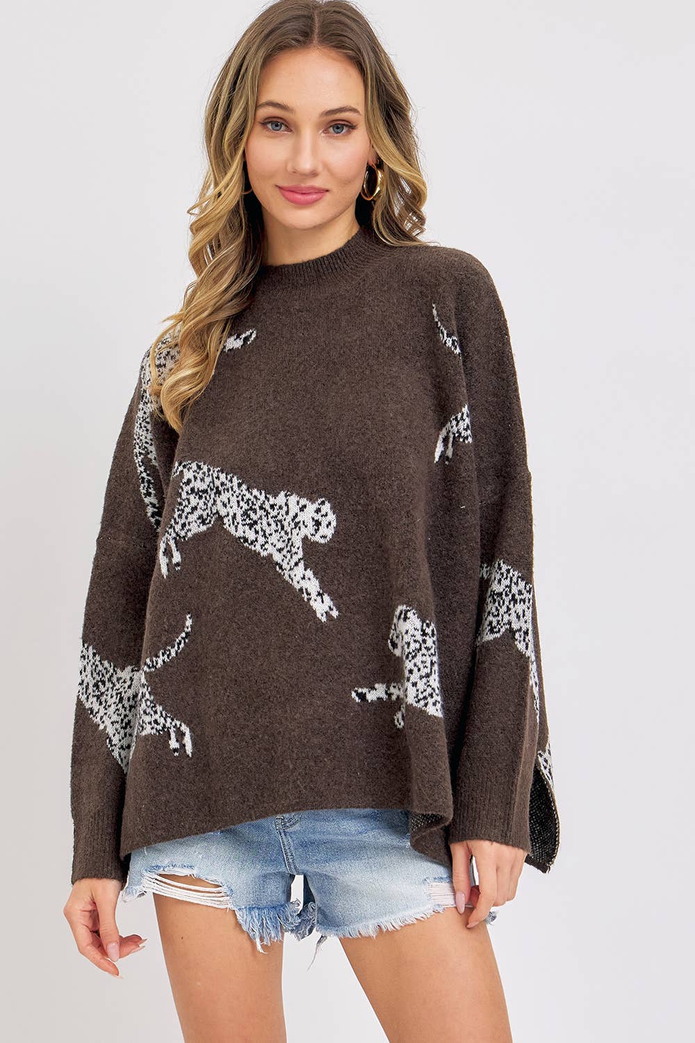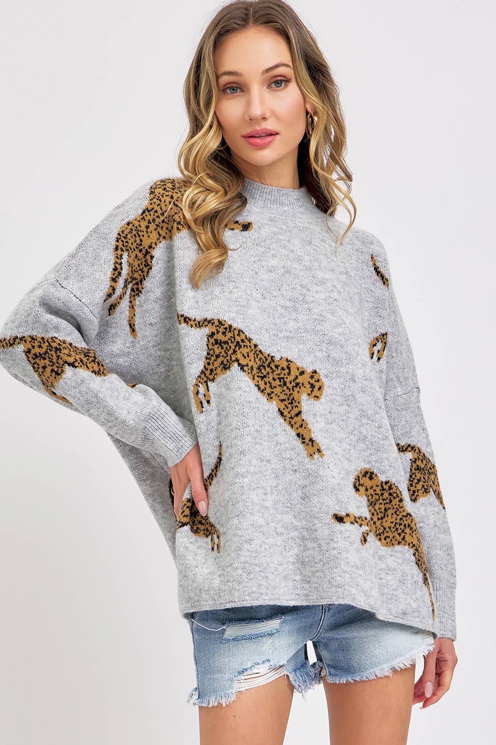 LEOPARD PATTERNED OVERSIZE KNIT SWEATER