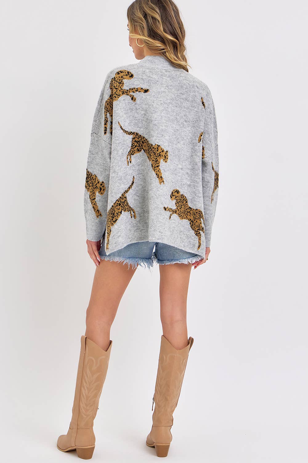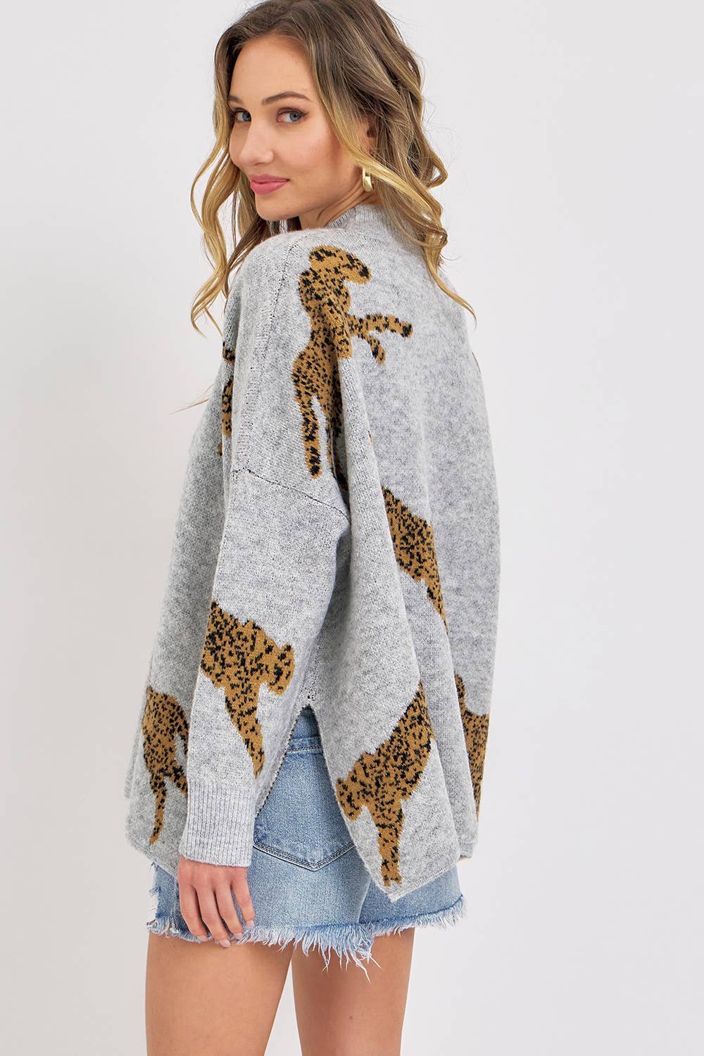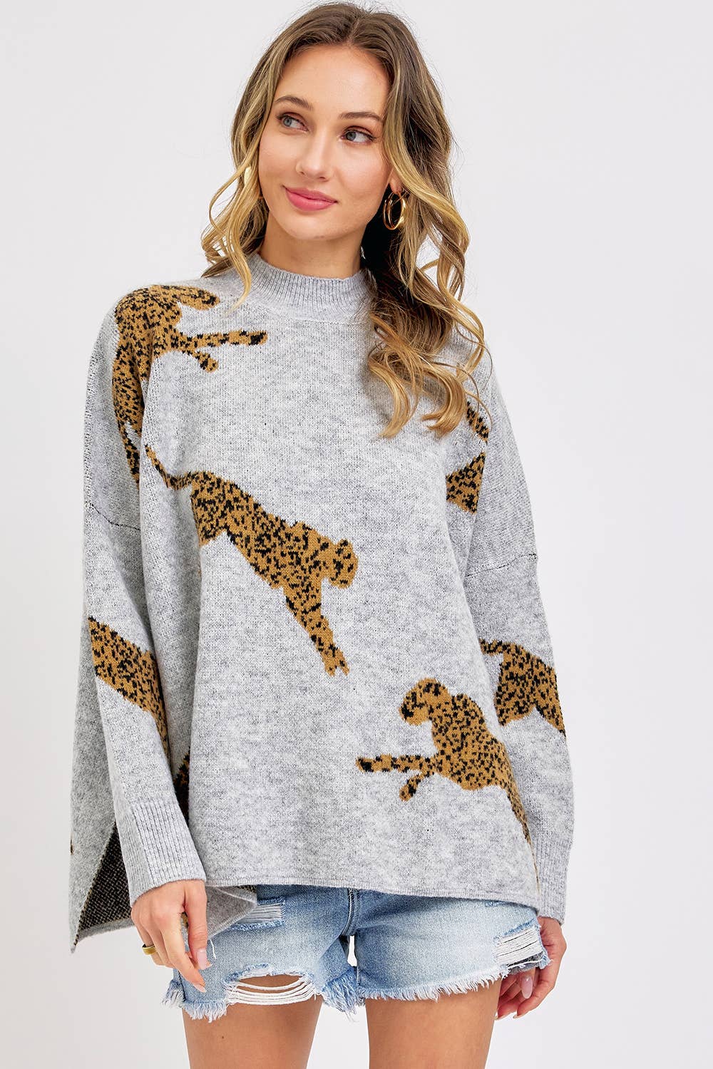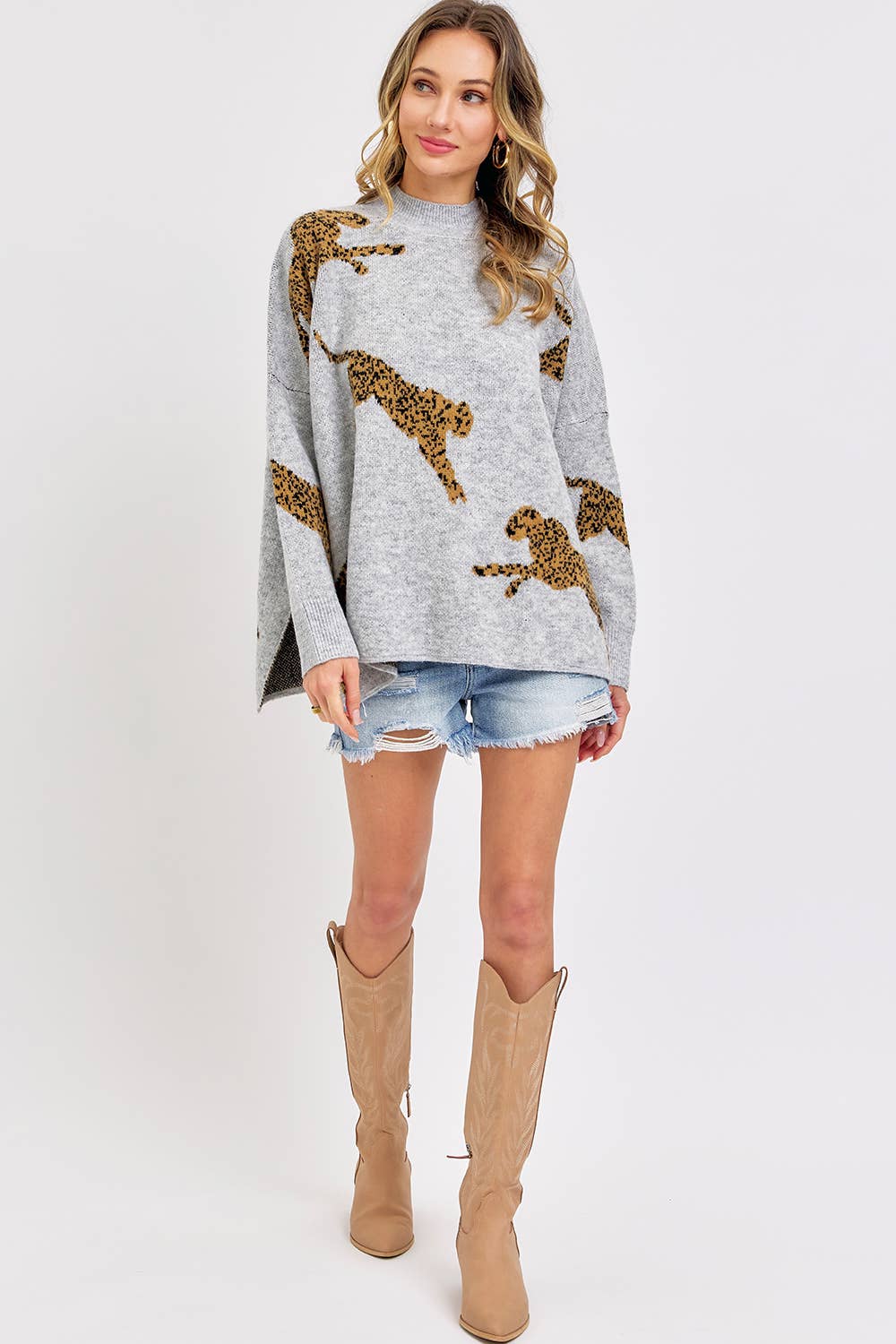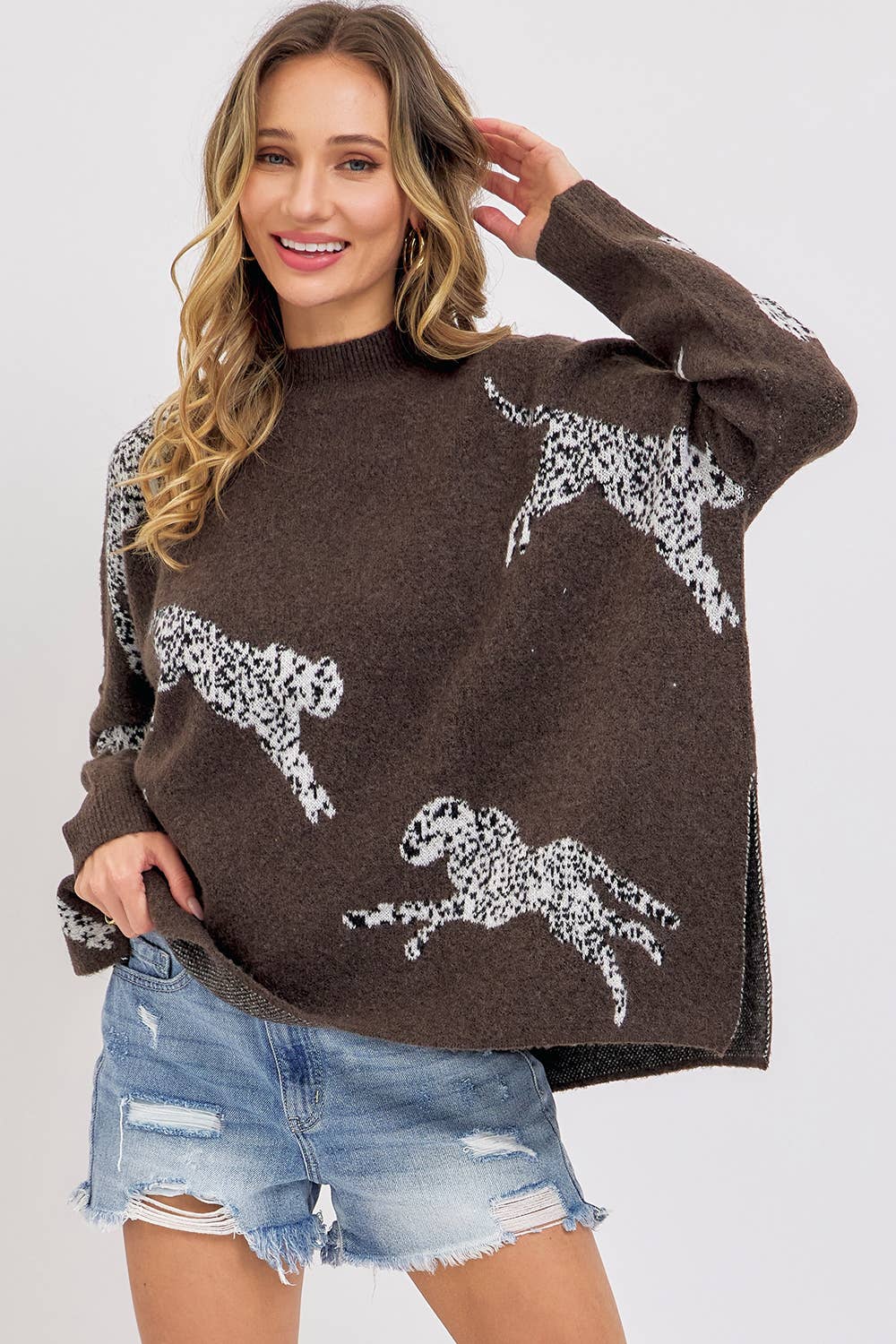 LEOPARD PATTERNED OVERSIZE KNIT SWEATER