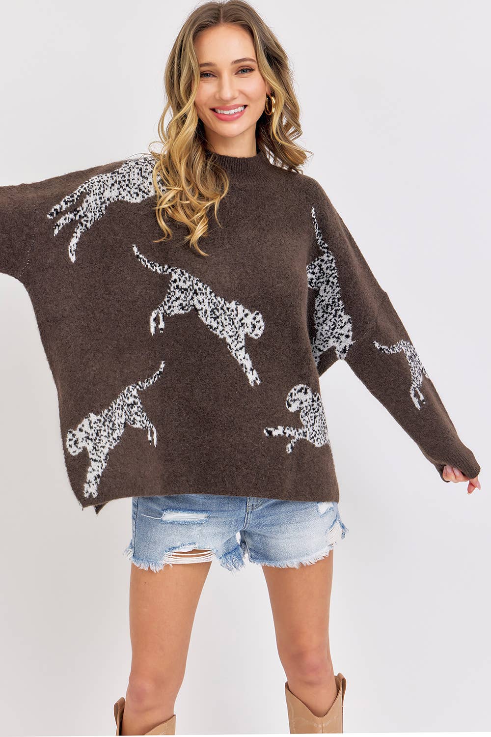 Click here to be notified by email when LEOPARD PATTERNED OVERSIZE KNIT SWEATER - S/M / Brown / Contemporary becomes available.